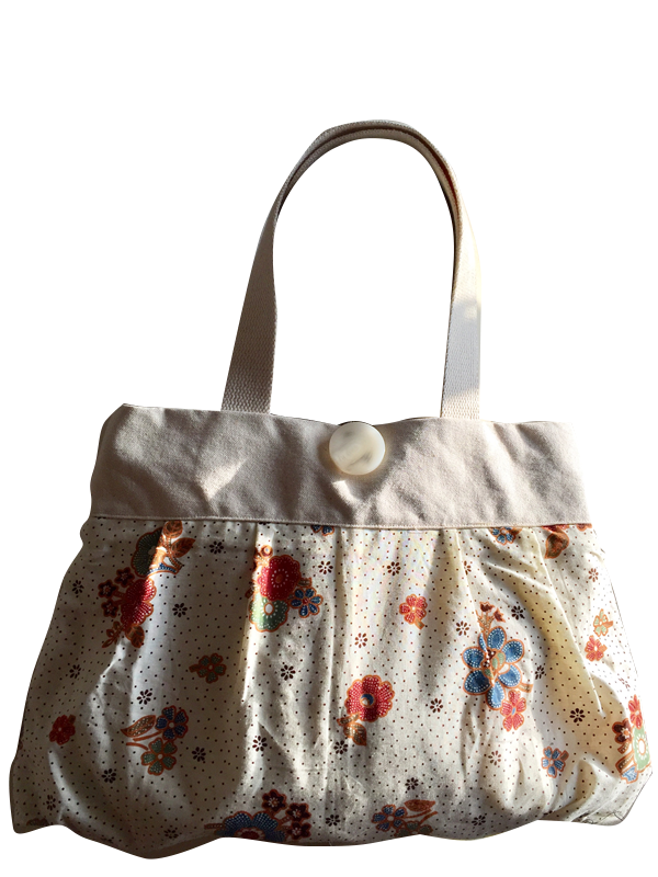 Made from off-white duck canvas and a delightful floral fabric with strong cotton webbing.