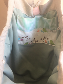This Three Tier bag is made from cute birds themed fabrics that was found in a small shop in Manhattan.