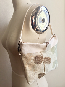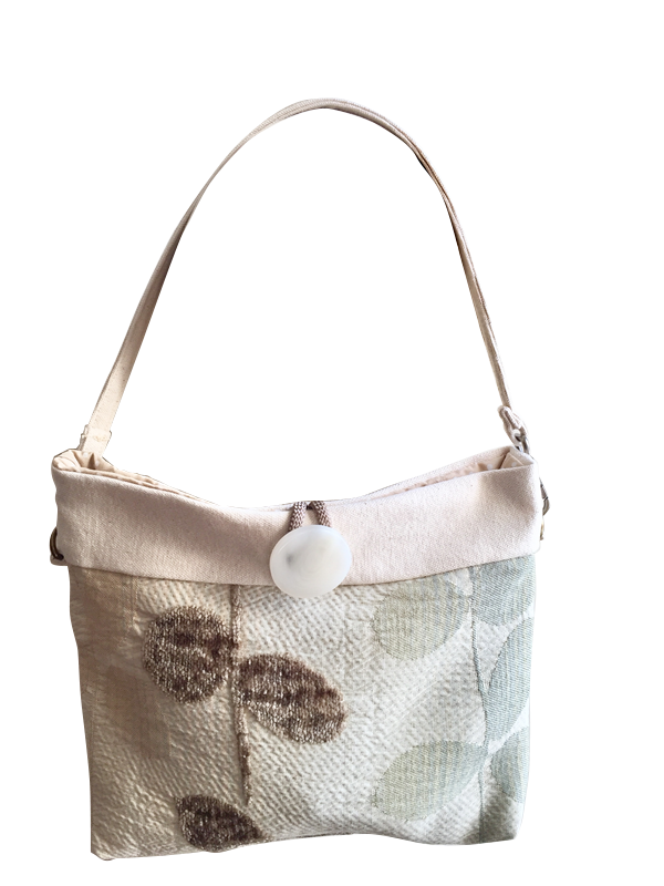 Made from a very strong off-white duck canvas and a delightful floral fabric with a removable strap.